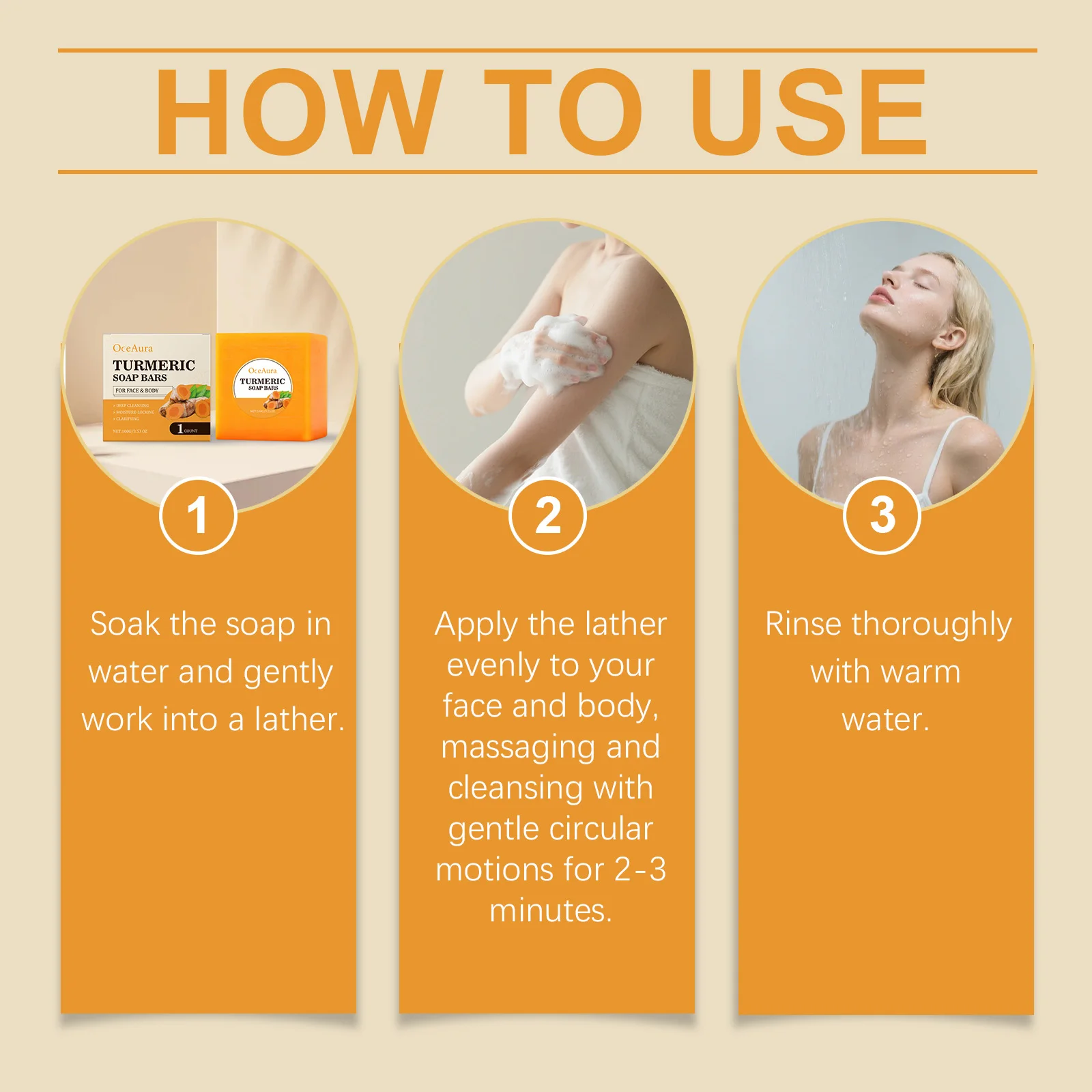 Massage: Apply the dense foam to the body, focusing on areas prone to oil or congestion (like the back and chest). Massage in gentle circular motions, allowing the active Turmeric essence to penetrate for 30–60 seconds.