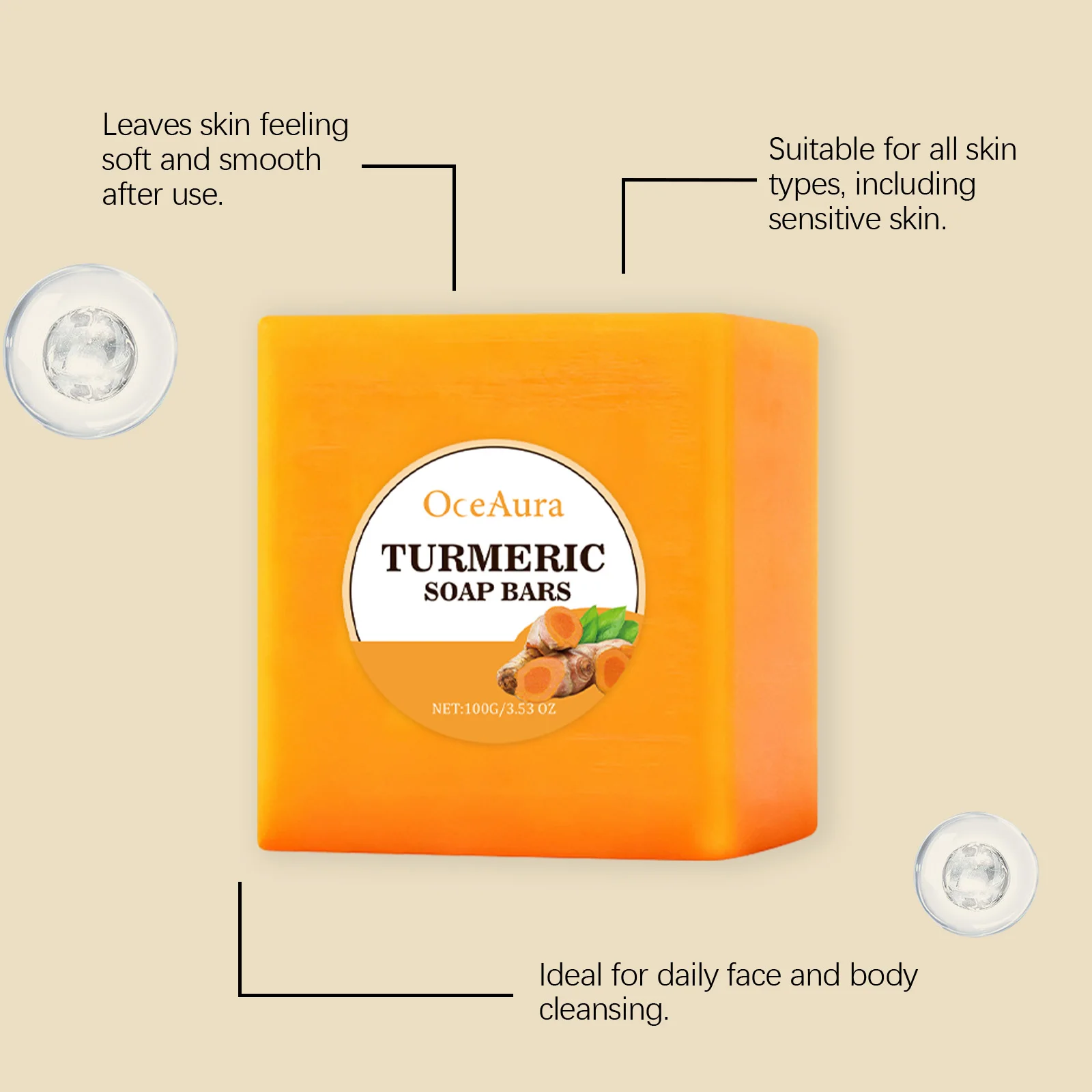Elevate your daily ritual with the power of AuraGlow™. Formulated with premium Turmeric essence, this artisanal bar penetrates deep into the pores to magnetically attract and remove daily pollutants, excess sebum, and cellular debris. The result is a total skin reset that replaces stickiness and dullness with a refreshed, transparent clarity.